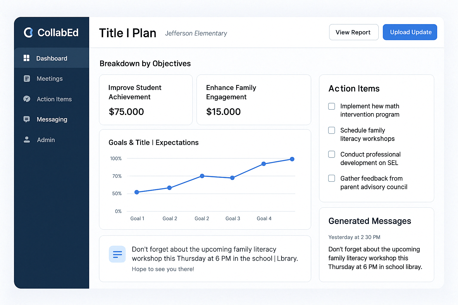 Instead of merely documenting the past, our platform empowers school leaders and families to shape the future of their Title I programs with intelligent, automated, and inclusive tools.